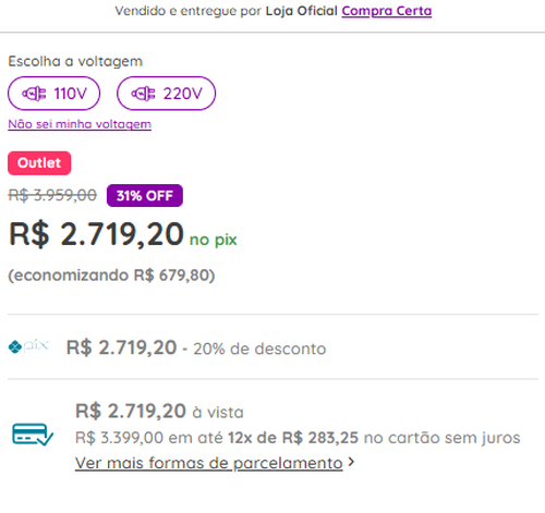 PrecinhoooR$ 2.719,20no pix ou12x de R$ 283,25 no cartão