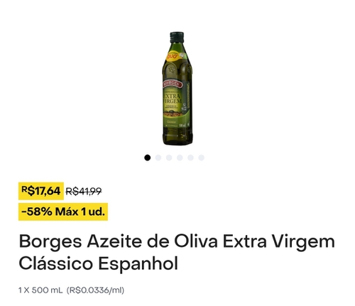 Várias lojas dentro do Rappi estão com o azeite Borges em promoção! Achei esse de R$ 17,64 no Pão de Açúcar, mas no Extra, por exemplo, estava R$21