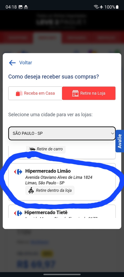 E regional, entra no app Carrefour e pede para retirar no hiperCarrefour limão