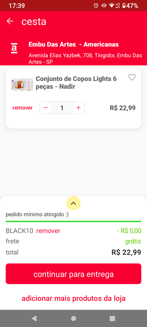 Promoção do interior do Acre que só funciona no interior do Acre - “Cálculo de frete indisponível no momento.”