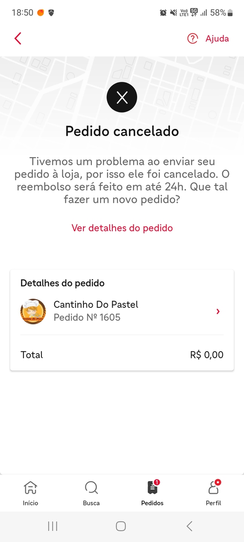 Canceleram em dois pedidos que fiz. Uma observação, não quero lacrar, nem pagar de santo. Mas observando melhor, acredito que os restaurantes que aceitam ficam no prejuizo. Eu tinha feito um pedido numa confeitaria e a moça aceitou o pedido. Ela me mandou mensagem no chat desesperada, inventou que tava sem ingredientes etc...e pediu pra cancelar. Eu nao conseguia mais pois o motoboy ja estava la. Depois de um tempo o pedido foi cancelado. Provavelmente ela arcou com o prejuizo do custo do motoboy e teve alguma punicao pelo cancelamento.