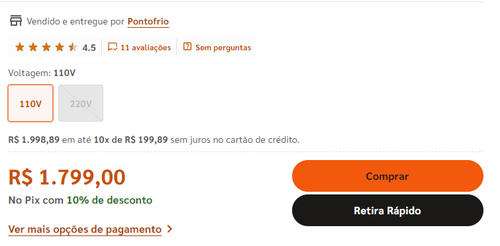 PRECINHOOOO R$ 1.799,00 no pix ou em até 10x de R$ 199,89 e ainda deu FRETE gRATIS para retirada na minha região