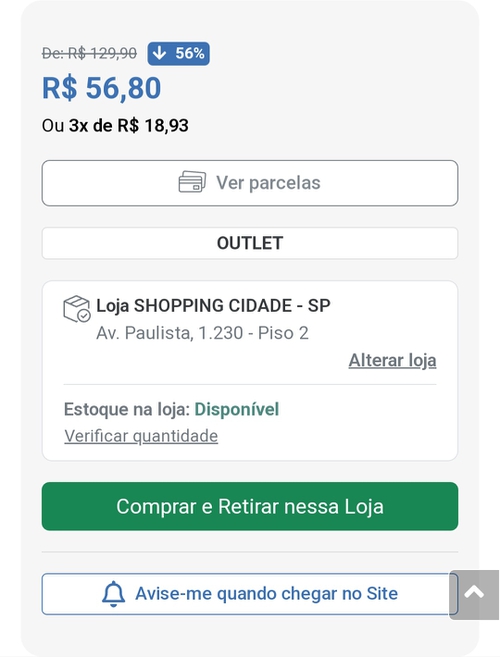 3 - após escolher a loja, clique em comprar e retirar nessa loja