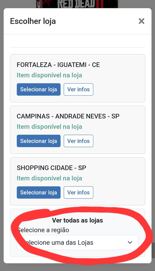2 - Selecionar a loja que está próxima de vc (são poucas lojas)
