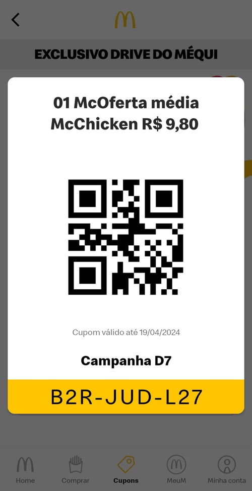 Rapaz, peguei esse cupom, saí feliz para o Drive. Chegando lá não passou. A funcionária falou que a unidade não estava na promoção. Quando mostrei a ela que estava ela disse que eles ainda não tinham atualizado o sistema e por isso não tinha tava aparecendo pra eles ainda. Só depois que virasse o dia. Fiquei na bad...