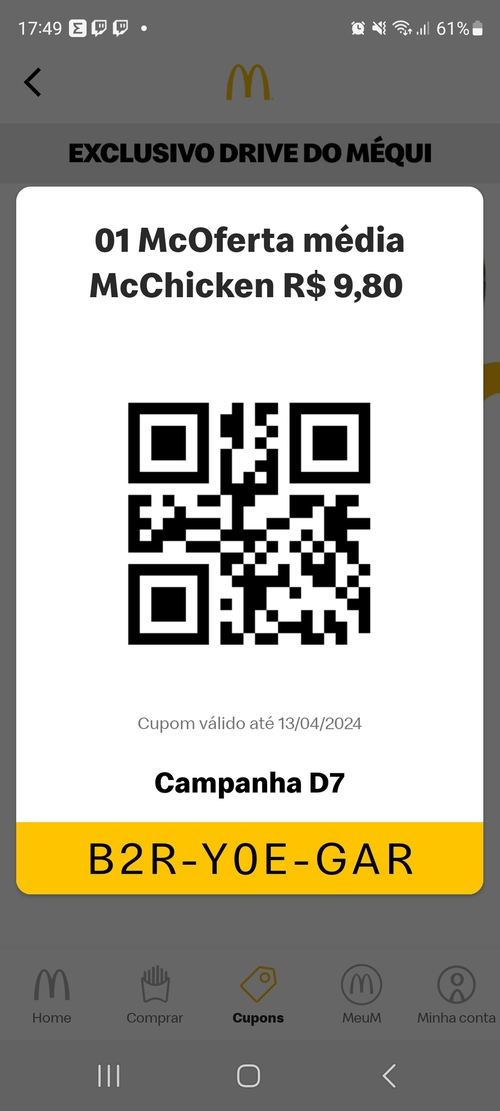 Resgatei 3 cupons, top!! So o Mc Chicken custa esse valor