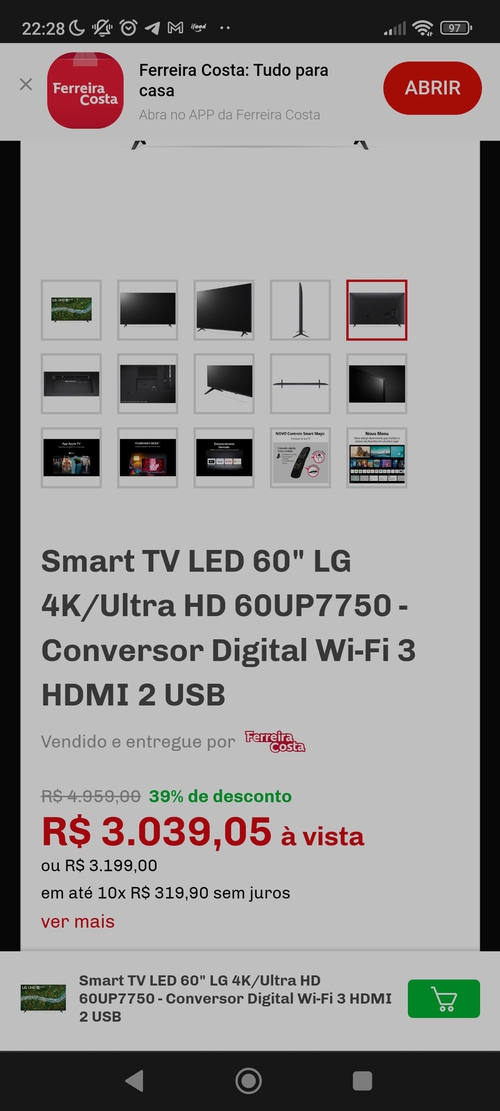 (Regional) Smart TV LED 60'' LG 4K/Ultra HD 60UP7750 - Conversor Digital Wi-Fi 3 HDMI 2 USB