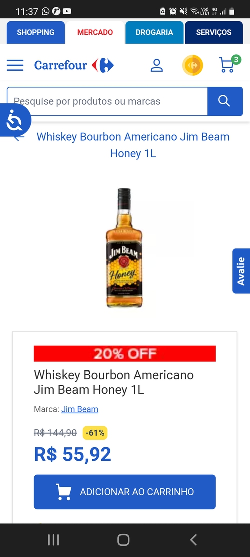 Ótimo preço! Peguei esse JB Honey e para mim saiu 55,92 em Porto Alegre.