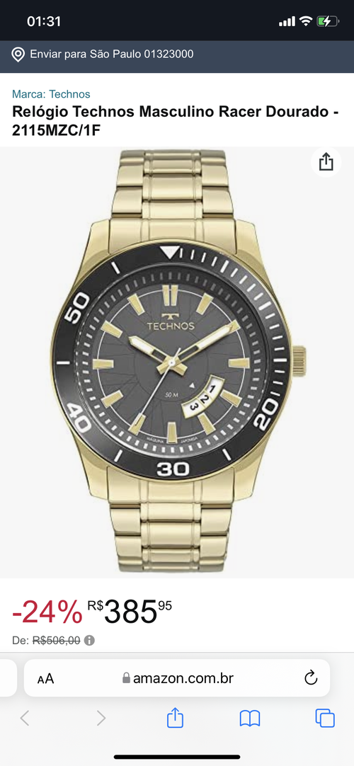 Relógio Technos Masculino Racer Dourado - 2115MZC/1F