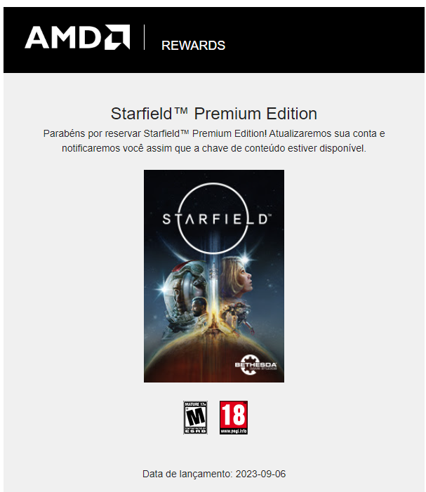Starfield será dado pela AMD como brinde para usuários que adquirirem CPUs Ryzen ou placas de vídeo Radeon, da marca, selecionados. O game chega em 6 de setembro para diversas plataformas e a promoção da AMD vai valer até 30 de setembro. A depender do hardware, o jogador terá acesso à versão padrão ou premium do jogo.