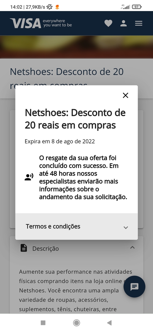Visa enrolando 🙄Achei que a Visa tava enrolando só pra pagar os reembolsos da proteção de preço, tenho mais de 5 que ainda não foram pagos, mas pelo visto até pra entregar um simples voucher estão enrolando. Tô vendo que vou precisar acionar o reclame aqui e tbm no site do consumidor pra ver se honram...