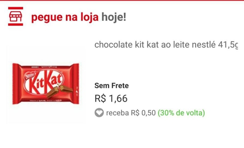 (Retirar na loja + Ame) Kit kat ao leite R$100 pedido mínimo