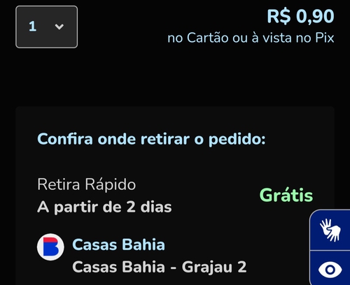 Aqui deu opção de retirada com frete grátis. Vlw