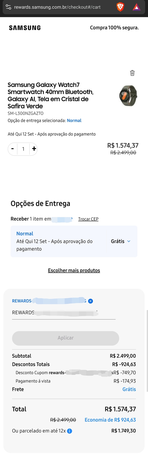 2. Realize a Compra pelo site rewards.samsung.com.br e aplique o cupom