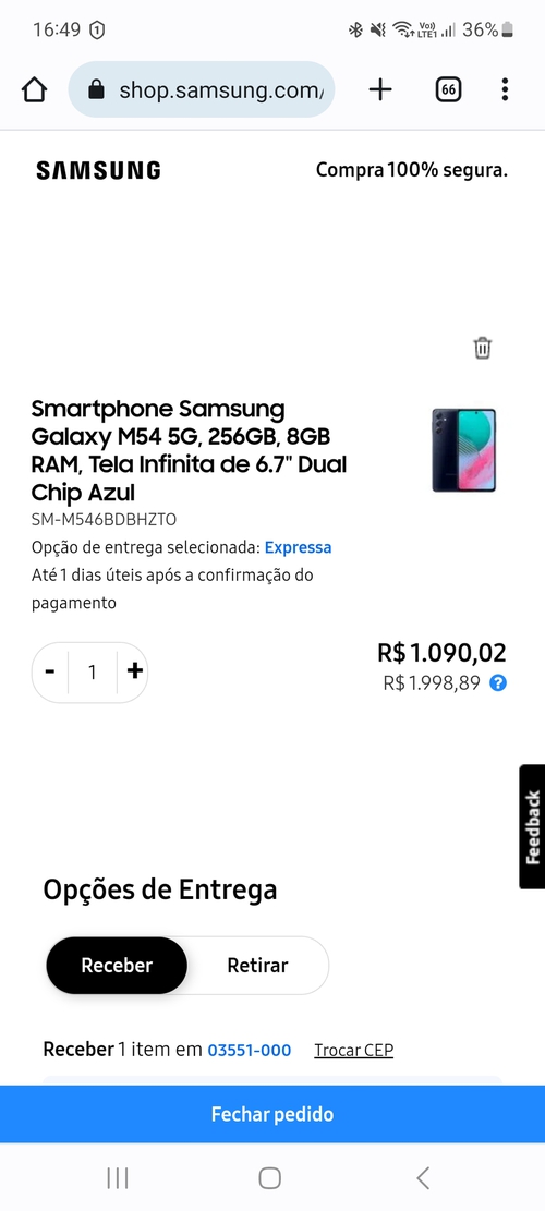No Samsung Members o M54 tá 2.699,10 e tem esse "direito" ao cupom. MAS no shop Samsung o mesmo aparelho está 1.799,00.