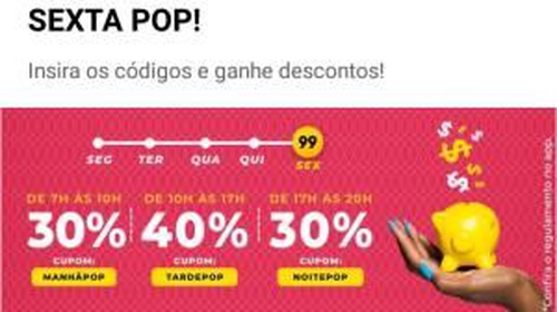 [RJ] 30% e 40% OFF em 3 cupons no 99Pop