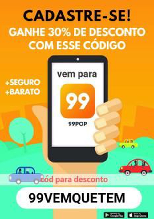 (RJ) 30%OFF em uma corrida no 99POP (Primeiras compras)