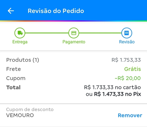 Coloca cupom ai o VEMOURO q ficará um pouco mais barato colega 😊