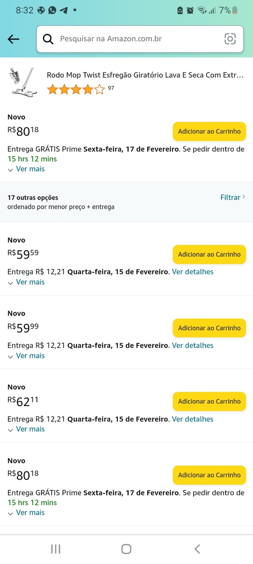 Tem que trocar o vendedor pra chegar no preço do post, porém não tem frete prime.