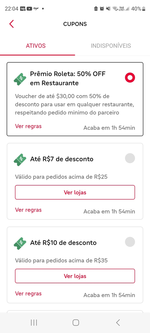 Inútil essa roleta pq aqui só dá clube ifood ou algum desconto que não há opções dessa lista para o meu endereço.