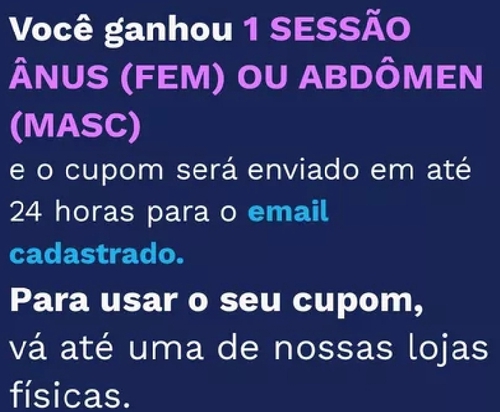 Lembrando para quem já é cliente, pode participar também, no meu caso já tinha faixa de barba e ganhei mais 3 sessões de faixa de barba. Hoje tentei novamente e ganhei 1 abdômen.