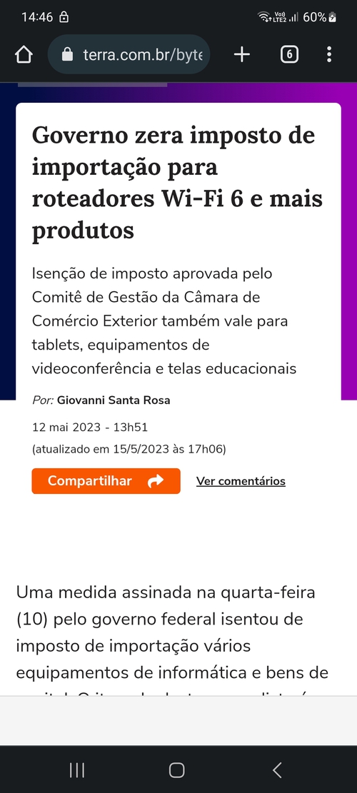 Tecnicamente se estiver sendo cumprida, os modem wifi 6 era pra passar sem taxa.