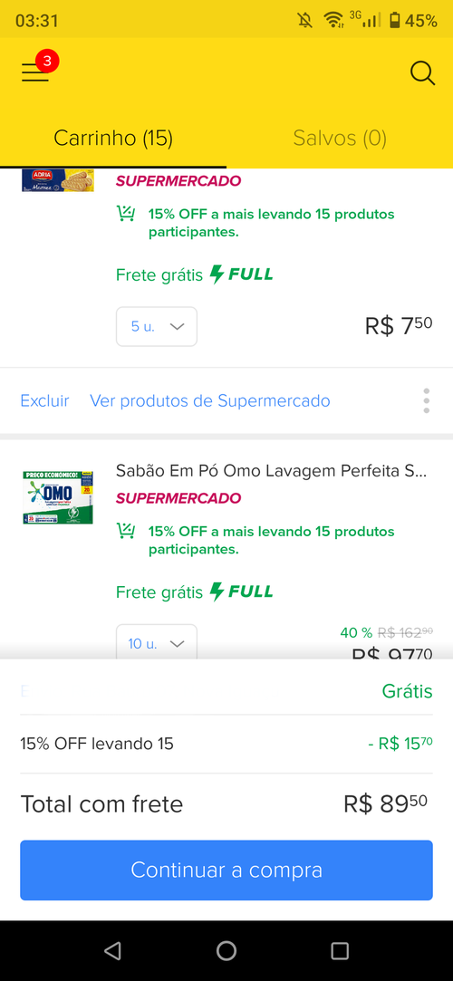 Valeu. Peguei 10 e 5 biscoitos recheados da nestle pra dar frete grátis
