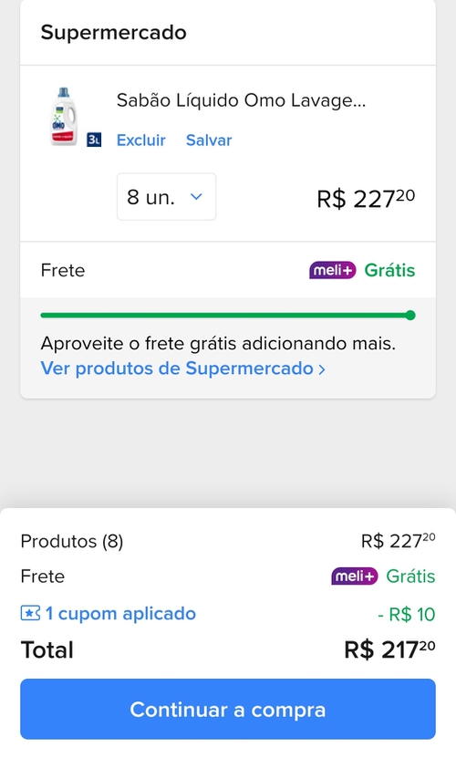 Frete gratis Comprando 8 unidades e aplicando o cupom