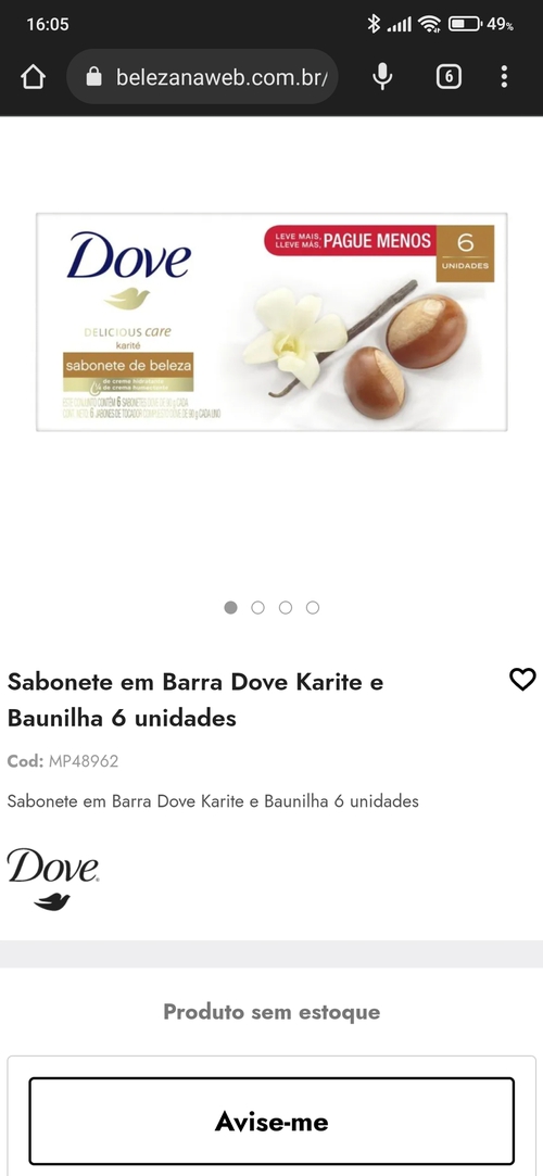 Sabonete em Barra Dove Karite e Baunilha 6 unidades