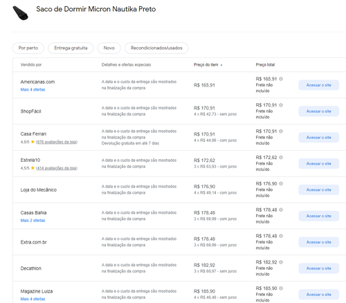 Menor preço segundo o Google Shopping
