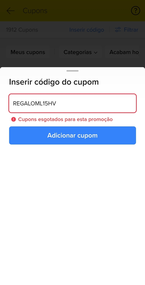 Aparece mensagem de erro ao resgatar, mas o cupom entrou lá na lista!