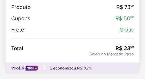 Comprei um cabo de chupeta pra bateria de carro de 63,90 por 13,90. Ainda recebi 3,21 em cashback e a compra acabou saindo por 10,69