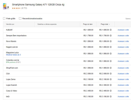 Samsung Galaxy A71 6 GB + 128GB | R$1.699