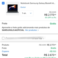 Notebook Samsung Galaxy Book4 i3 8GB 256GB SSD Tela 15,6" Full HD