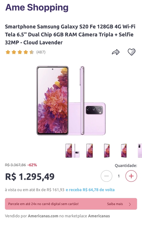 Olha pessoal, não vale a pena. Eu peguei na promoção por 1480 Mastercard. A tela é ruim, bem fraquinha. A do s21 fe é linda perto da desse.