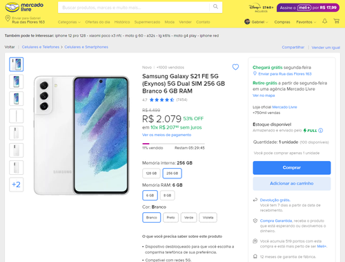 A mesma versão que apareceu no dia 18/09. Diz ser a versão de 256GB e 6GB de RAM, mas até onde sei essa versão só vem com 8GB de RAM no Brasil. A promoção do Buds 2 ainda está valendo.