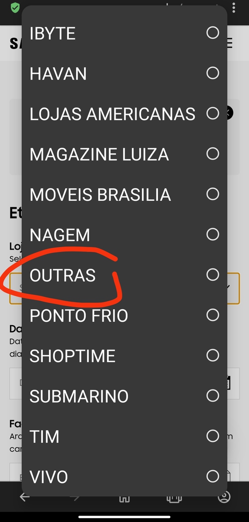 Pessoal pra quem comprou, na hora de resgatar o carregador vocês escolhe "outros", na hora de escolher a loja onde comprou o celular?Pausaram o anuncio so porque ia comprar mais 2 ontem
