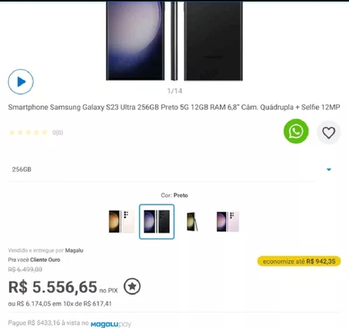 Caroooo paguei 5500 dia 14 no magalu no de 256g , a caixa chegou amassada no dia 20, reclamei e vão devolver 350 reais ainda pra mim