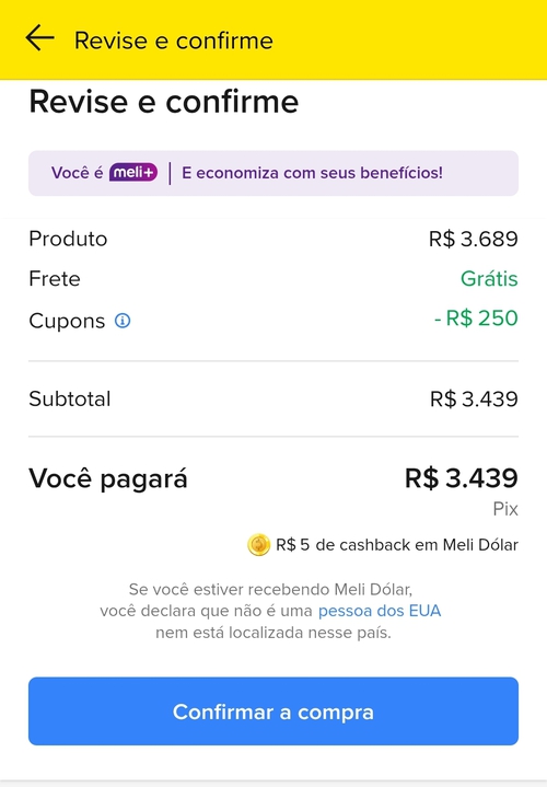 Somente na cor violeta e pagamento via Pix. Tenho Meli+ não sei se influencia.