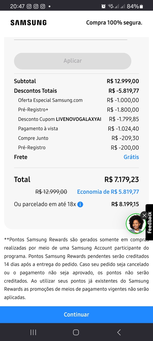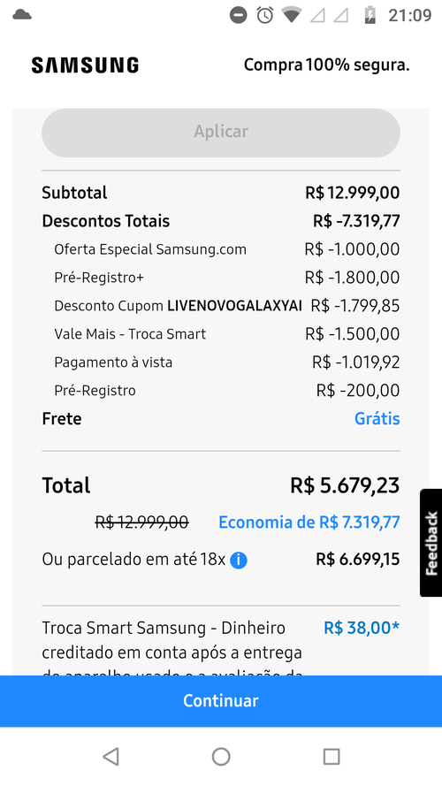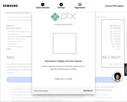 aqui rolou..mas o site da samsung, como sempre, bugado. Ainda esta como pagamento pendente. Se cancelarem (como eles adoram fazer), é um sinal que eu nao deveria comprar mesmo kkk
