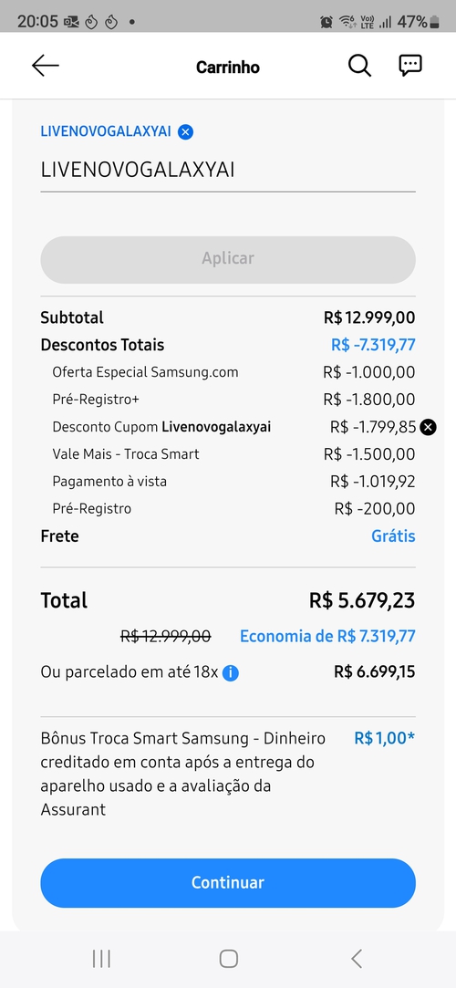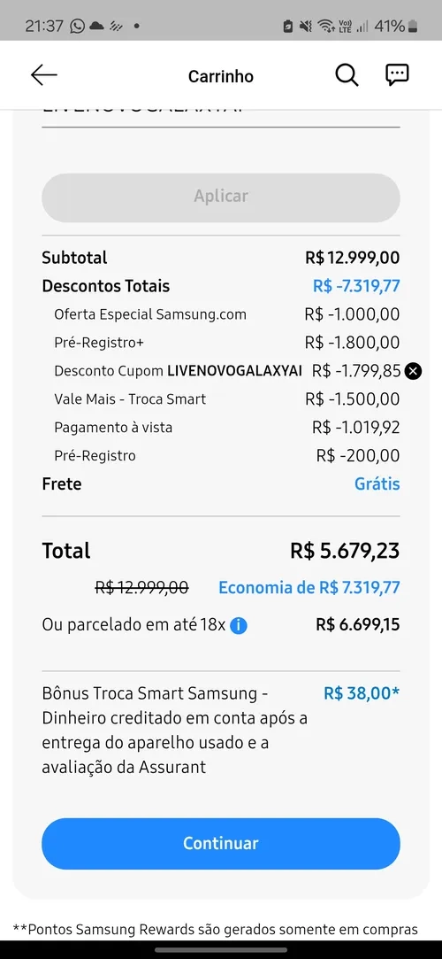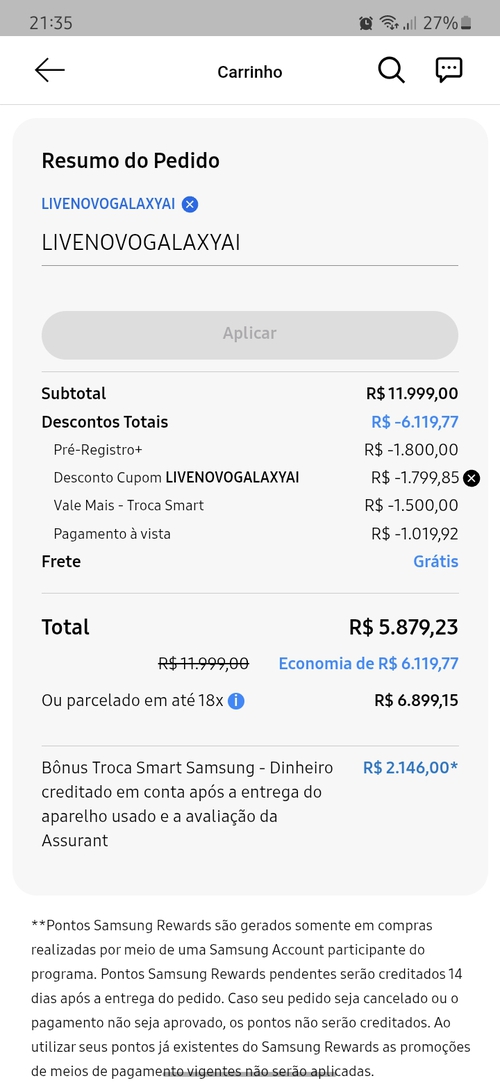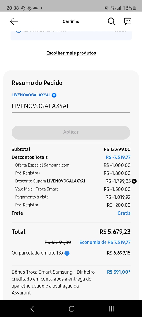 Pra chegar nesse valor tem que usar o cupom acima + troca smart + cupom de 2k do pré registro