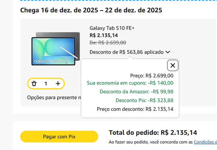 Tablet Samsung Galaxy Tab S10 FE PLUS 128GB 8GB RAM, Tela 13.1 90Hz, Com Caneta S Pen e Capa Magnética. 7 Anos de Atualizações