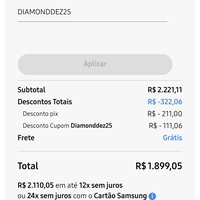 Na vdd o valor é mais barato colega, coloca o cupom DIAMONDDEZ25 fica 1899