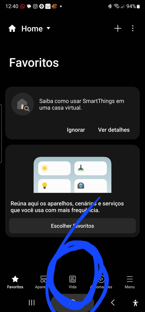 Abrindo o app do smarthings a aba da vida fica ali embaixo no centro.