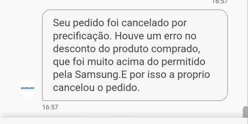 E a Samsung faz mais vítimas... Ano passado fui um que confiei nessa Loja da Samsung, eles cancelaram o pedido mas não o pagamento, a minha sorte é que entrei em contato com o banco e eles entraram em disputa (não saí no prejuízo). Por mais que os preços nessa Loja da Samsung as vezes pareçam atrativos eu decidi nunca mais comprar nada, muito melhor evitar dor de cabeça. Espero que quem foi enganado dessa vez consigo o dinheiro de volta, sorte aí 👍
