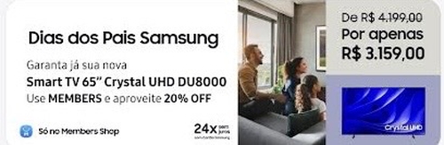 Cupom MEMBERS no app Samsung Members celular Samsung. Tv 2024 65 polegadas R$3.159