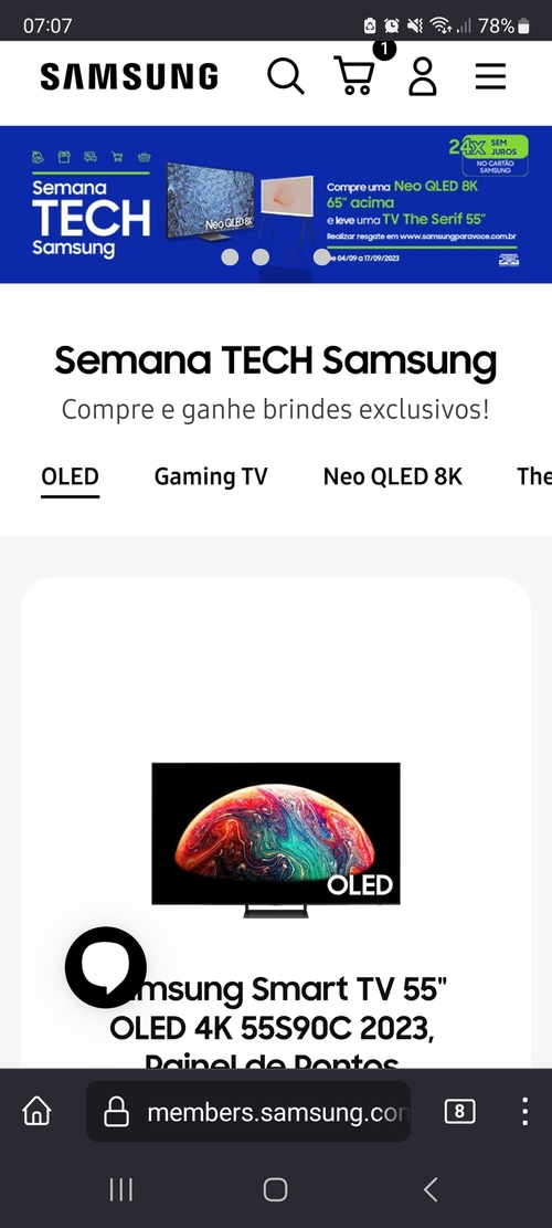 Se for pra revender, essa The Serif é bem complicada, é um público muito específico. Essa 8K deve ser mais fácil, apesar das avaliações dela não serem muito promissoras. No Samsung Members, o banner fala em 8K de 65" pra cima!
