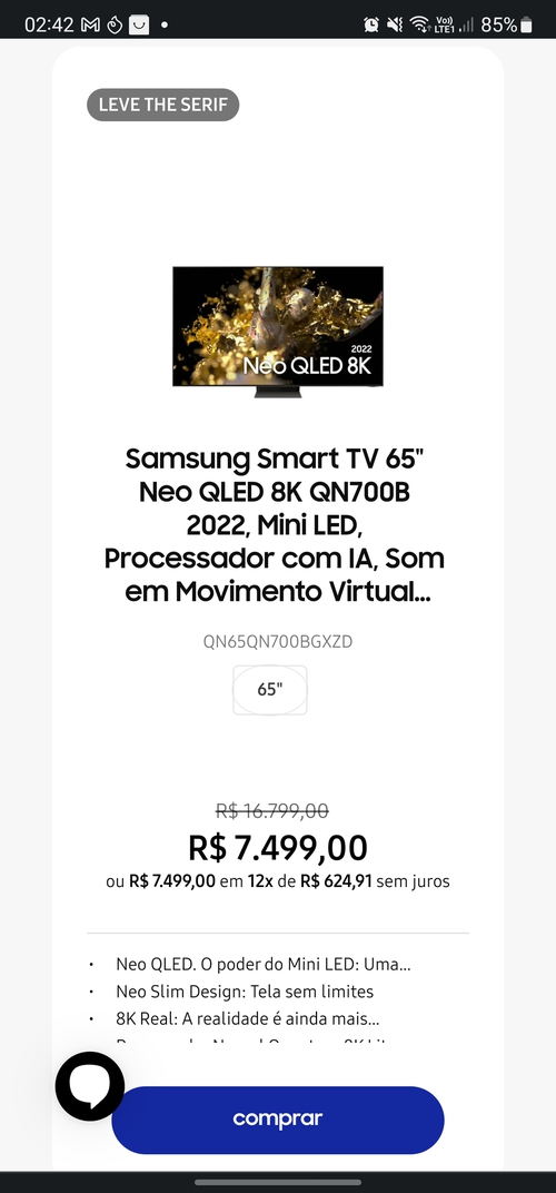 Isso mesmo que diz na TV 8k "Compre a 8k e leve a The Serif".