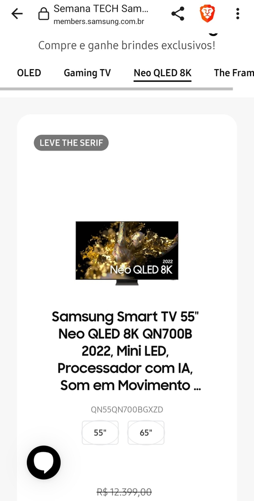 Tem uma promo Compre TV QLED 8K 55 acima e ganhe SERIF