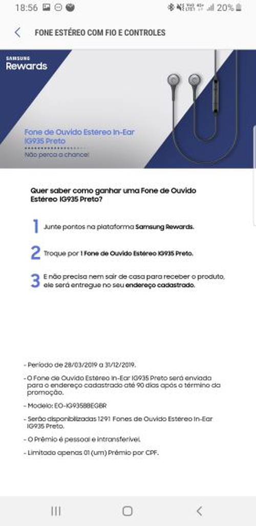 [Samsung Pay / Samsung Rewards] Fone Samsung In-Ear IG935 - 600 PONTOS no Samsung Rewards